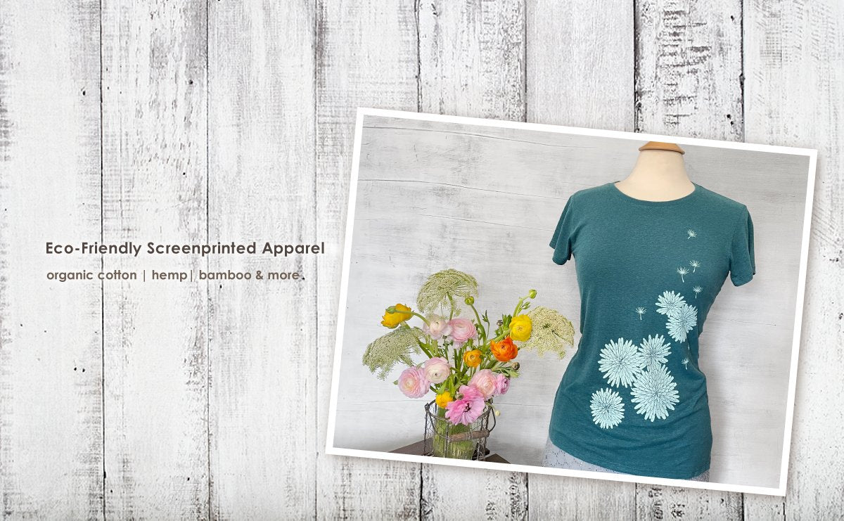 screen printed by hand with environmentally-safe inks.